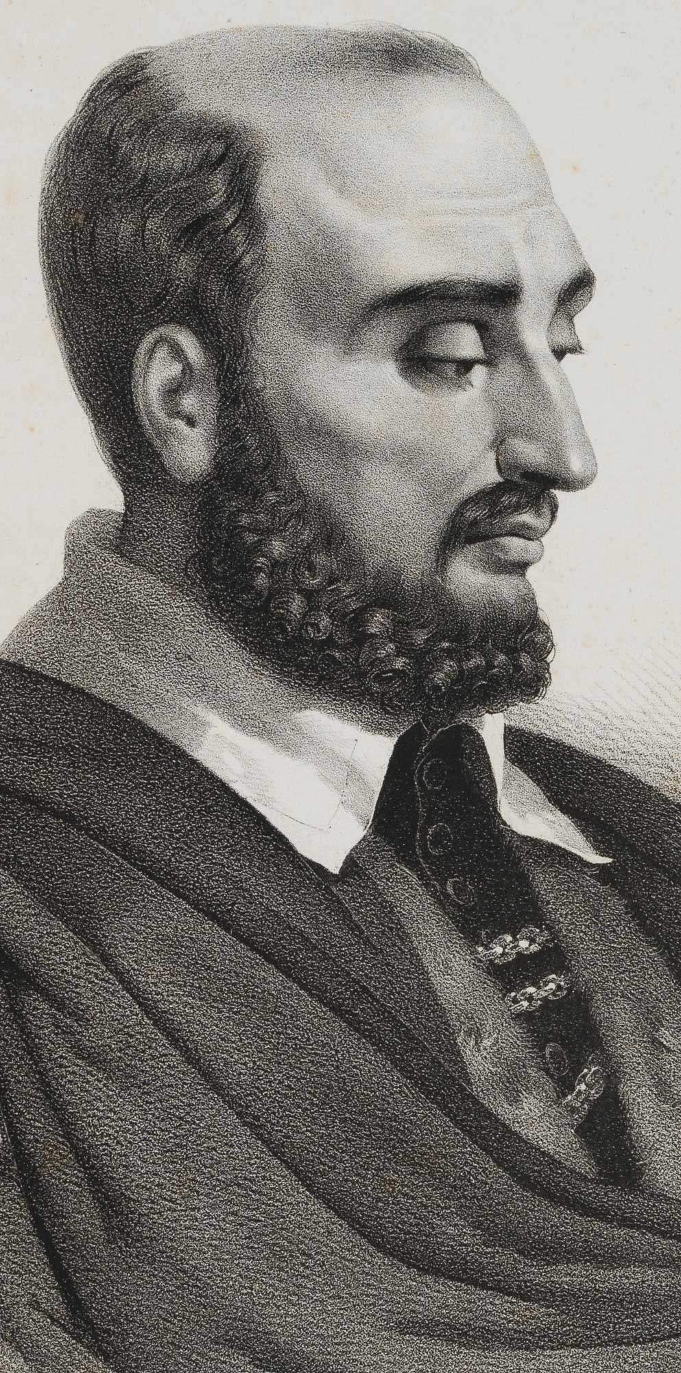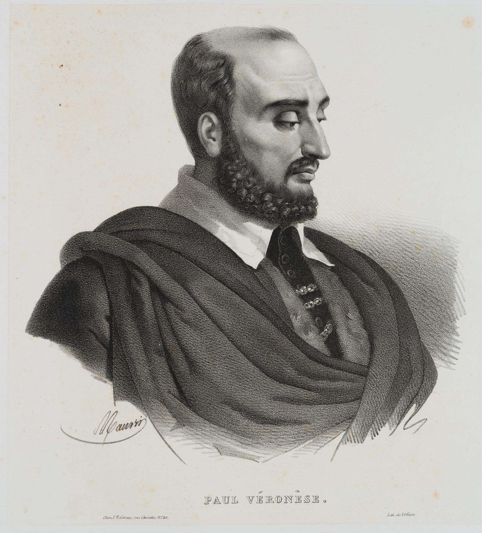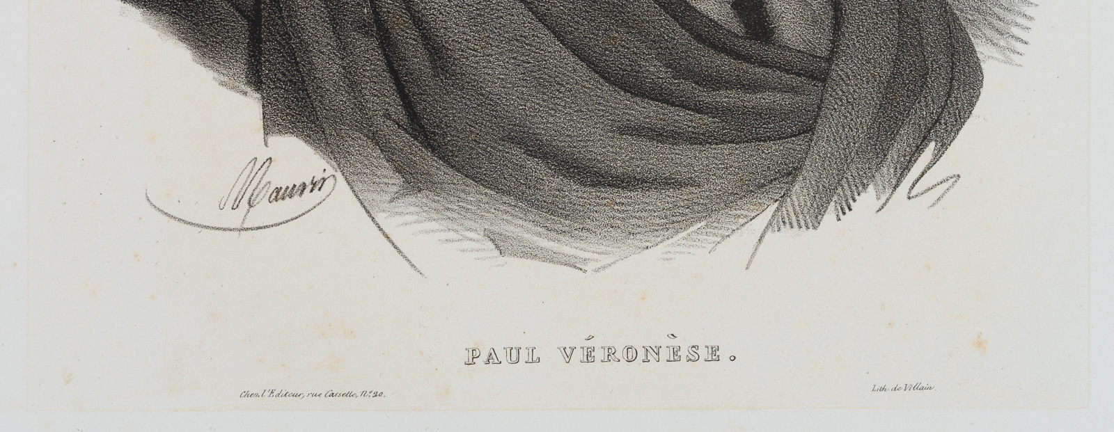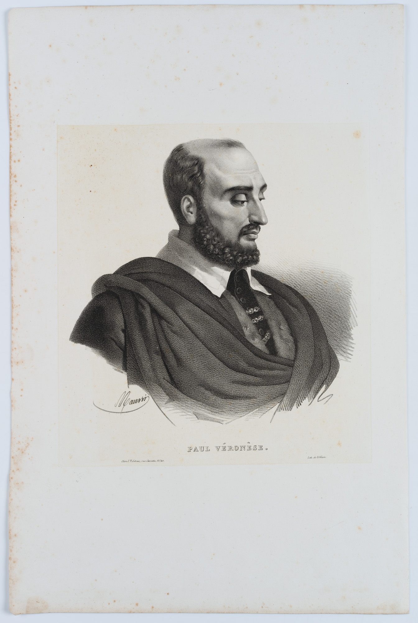 Antoine Maurin (1793 Perpignan – 1860 Paris), Porträt als Bruststück im Dreiviertelprofil des Malers VERONESE (1528 in Verona; + 19. April 1588 in Venedig), 19. Jahrhundert, Lithographie