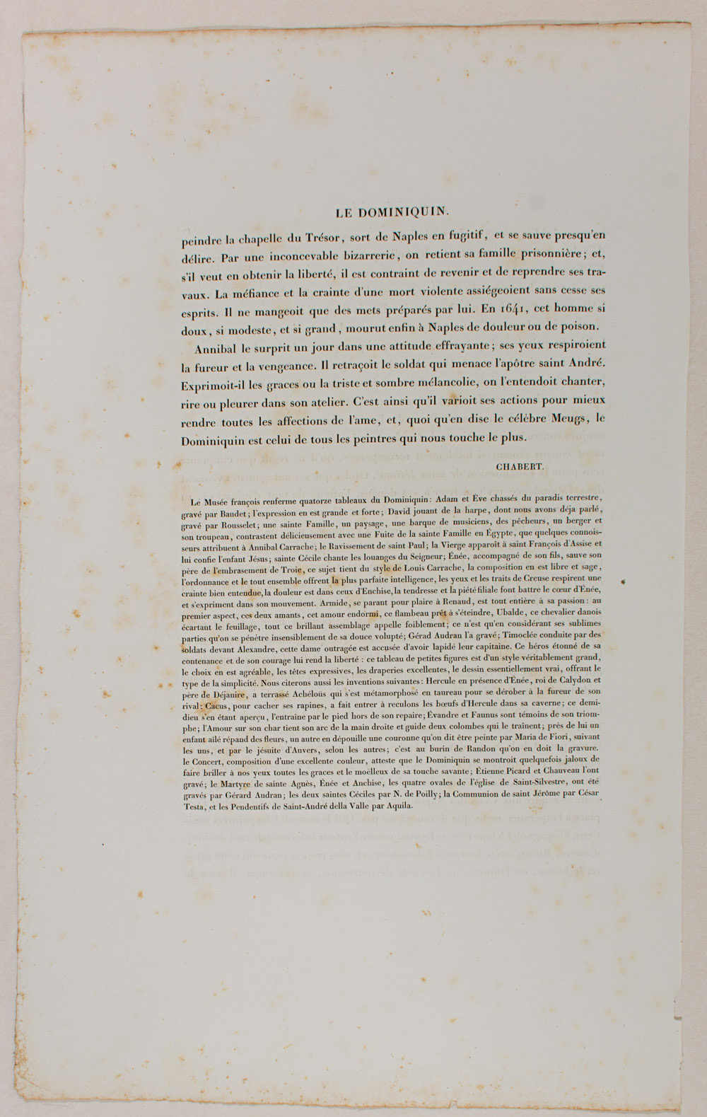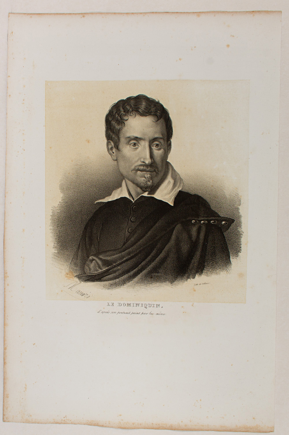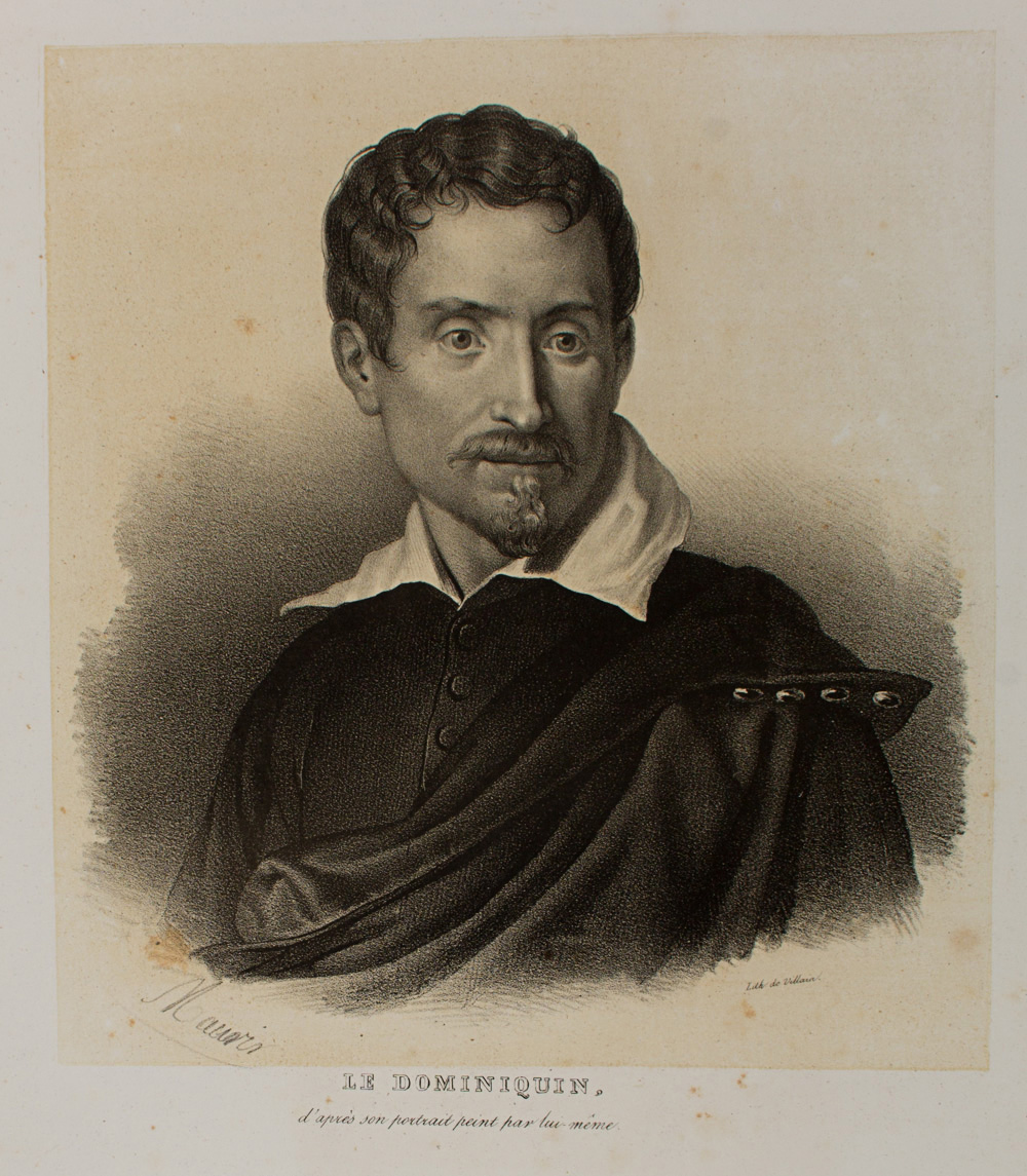 - Description: Portrait of Males Le Dominiquin, actually Dominico Zampieri {1581-1641). He was a painter of the Lombard school. Lithograph by Villaint. From the series: Pictures of the Italian School {ECOLES D’ESPAGNOLES). Signed: Maurin. Inscribed: Lith. de Villain. Title LE DOMINIQUIN d’apres son portaint peint par lui-meme. Separate text sheet (In French, by Chabert) in the format of the art sheet.