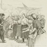 Adolph Friedrich Erdmann von Menzel (1815 Wroclaw – 1905 Berlin), The revolt of the women of the Belgian miners, 19th century, Wood engraving