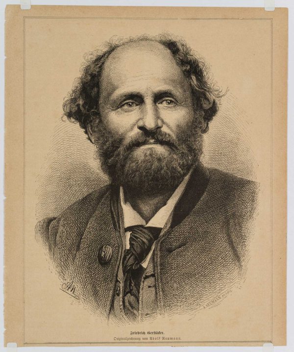 - Description: Successful portrait of the writer of adventure novels and author of “The Regulators in Arkansas” (1846) and “The River Pirates of the Mississippi” (1847). The portrait is from the magazine “Die Gartenlaube” (1872).