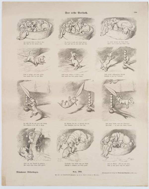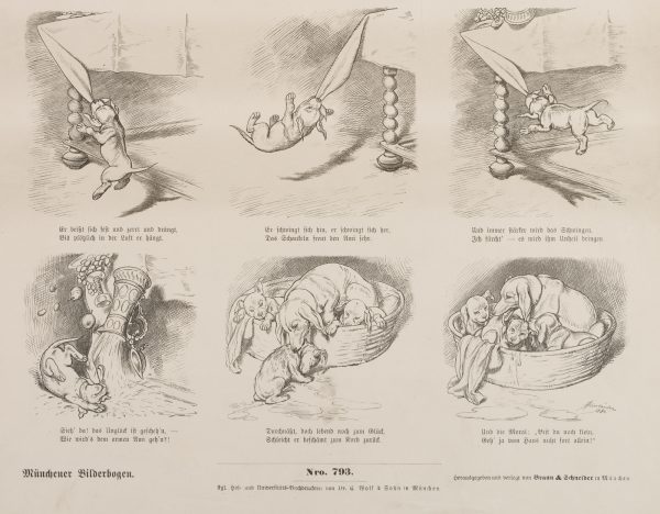 - Beschreibung: Heitere und satirische Bildergeschichte in Versen, liebevoll illustriert. Im letzten Bild signiert.