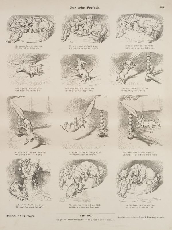 Adolf Oberländer (1845 Regensburg – 1923 München), Der erste Versuch, Münchener Bilderbogen, 793, HSt, 19. Jahrhundert, Holzschnitt