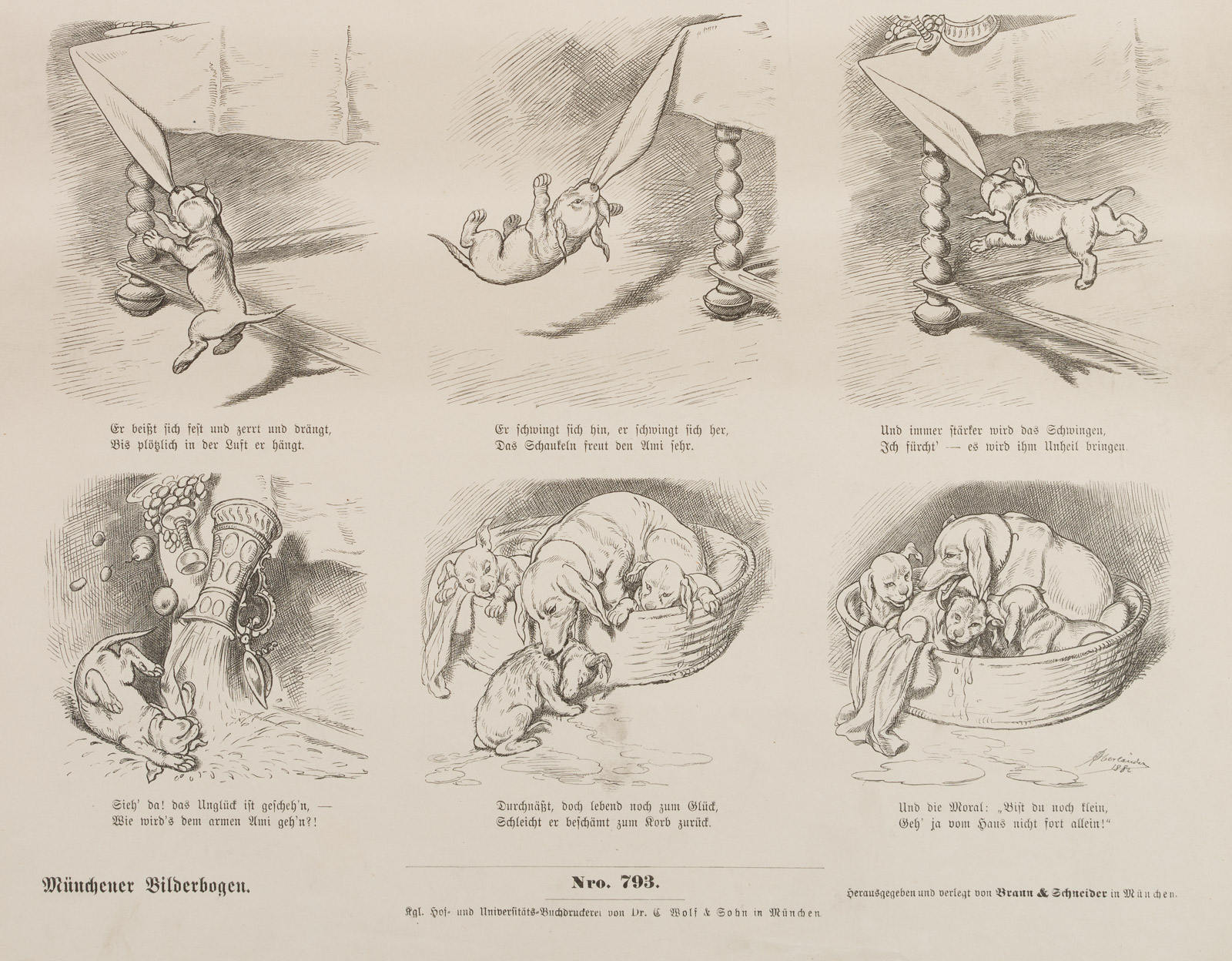 - Schlagworte: Hunde, Hund, Tiere, Abenteuer, Satire, Humor, Karikatur, Tiere, Genre, Deutschland, Historismus, 1800-1849