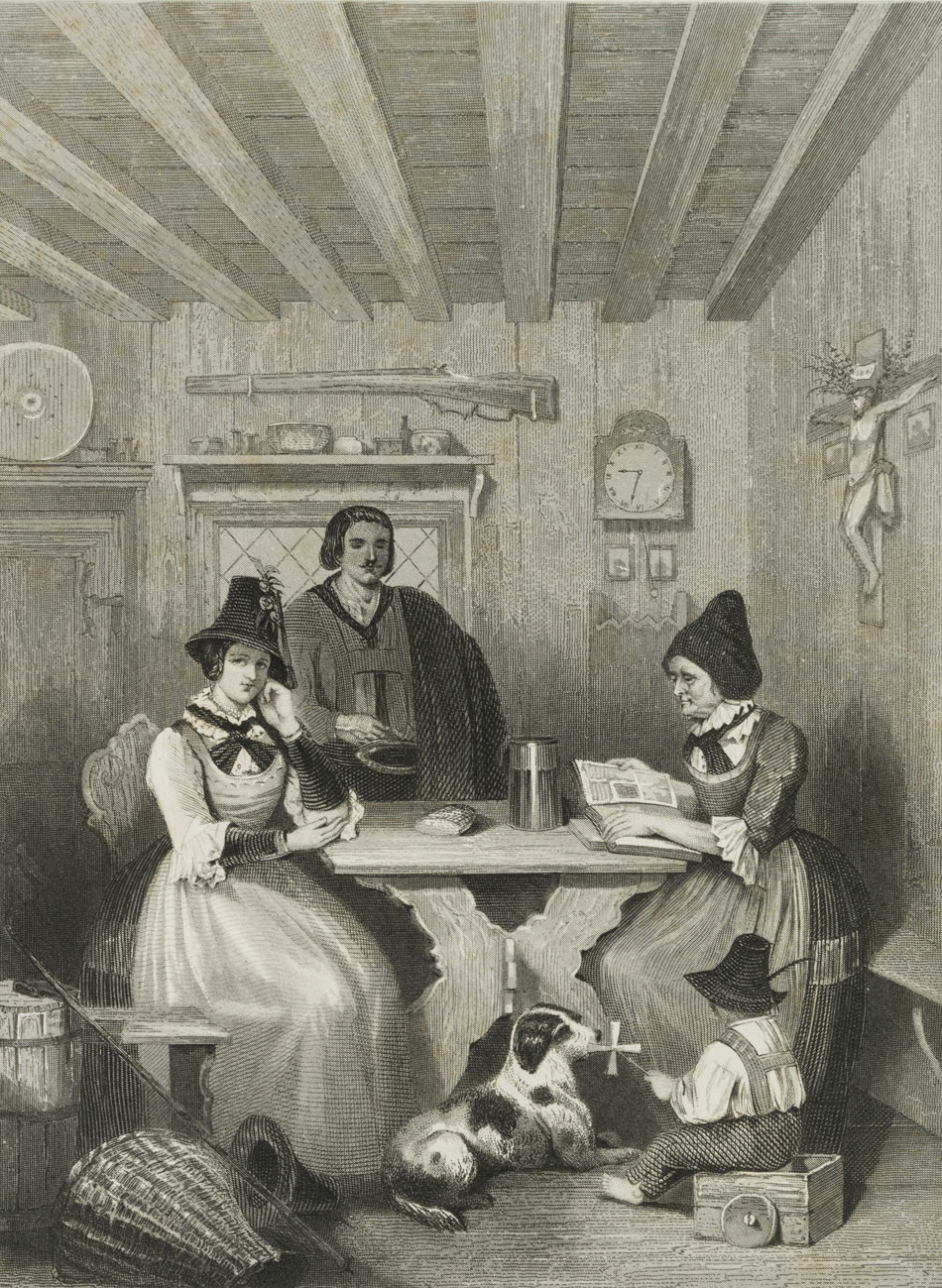 Albert Henry Payne (1812 London – 1902 Leipzig), A family scene in Tyrol, 19th century, Steel engraving