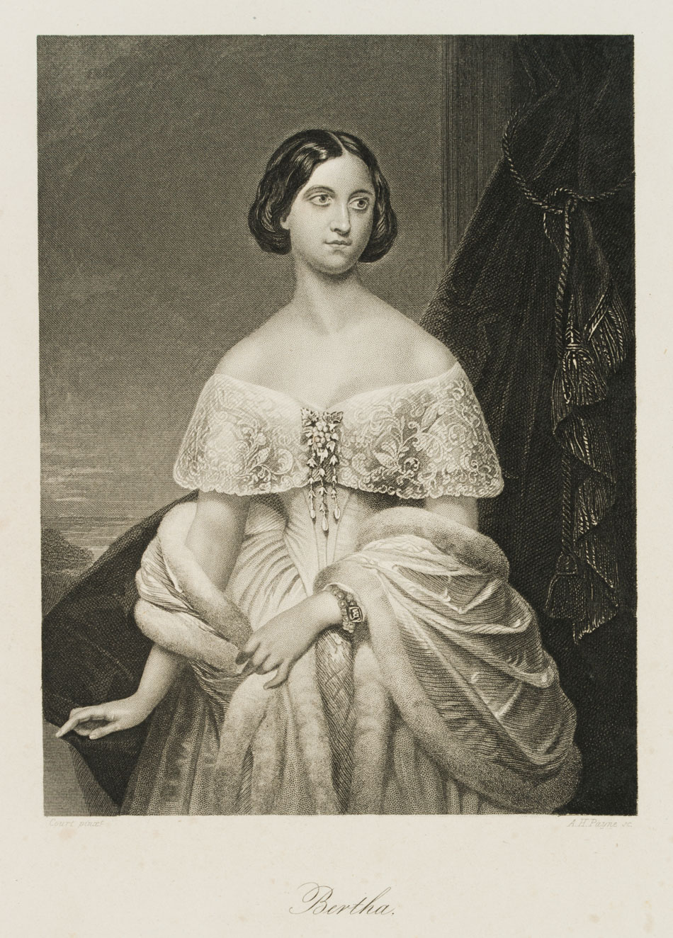 Albert Henry Payne (1812 London – 1902 Leipzig), Elegant lady in off-the-shoulder evening dress, 19th century, Etching