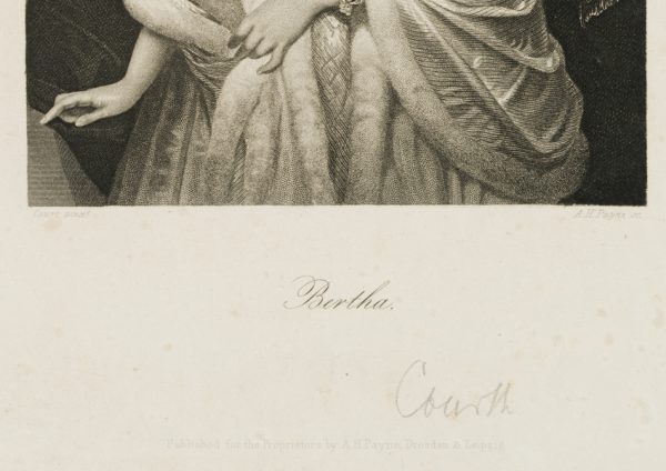 - Bezeichnung: Unterhalb der Darstellung vom Künstler in der Druckplatte signiert und bezeichnet mit “Bertha”.
