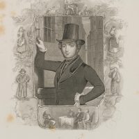 - Beschreibung: Stahlstich von Albert Henry Payne, unter der Darstellung signiert und bezeichnet: “A. H. Payne sc. // Eugene Sue // Verlag der Englischen Kunstanstalt von A. H. Payne in Leipzig”. Sehr schönes Brustbild des Eugène Sue. Selbstbewusst stützt der junge Sue seinen linken Arm in die Hüfte und blickt den Betrachter an, mit der Rechten zieht er eine Türglocke. Er trägt einen schwarzen Rock zum Zylinder, hinter ihm liegen hohe Häuser einer Gasse im Dunkel der Nacht. Kleine Szenen, getrennt von Ranken und Blattwerk, rahmen das Porträt Sues. Eugène Sue (Paris 1804 – Annecy 1857) war französischer Schriftsteller. Heute beinahe vergessen, war Sue zu Lebzeiten einer der meistgelesenen Autoren Frankreichs. Er ging mit seinen Forsetzungsromanen in Tageszeitungen in die Literaturgeschichte ein und war Verfasser des erfolgreichen Zeitungsromans “Les mystères de Paris” (Die Geheimnisse von Paris, 1814). Der Insel Verlag gab diesen Roman 2008 als vollständige Ausgabe in 2 Teilen heraus. Albert Henry Payne (London 1812 – Leipzig 1902) war Reproduktionsstahlstecher, Maler und llustrator.
