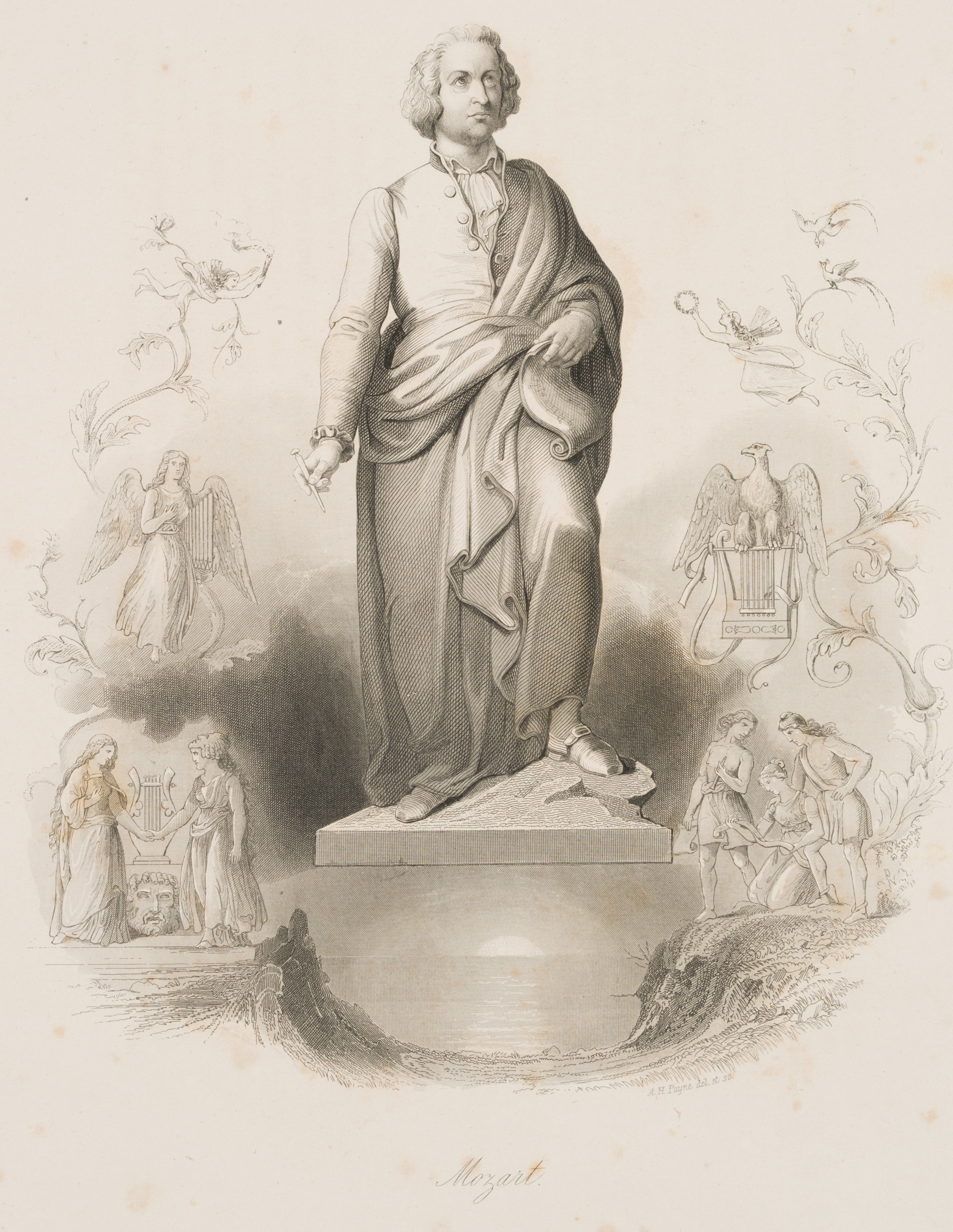 - Inscription: Lower right signed in the printing plate: “A. H. Payne del et sc.”. Lower middle inscribed in the printing plate: “Mozart.”.
