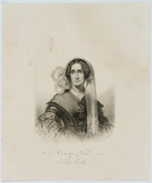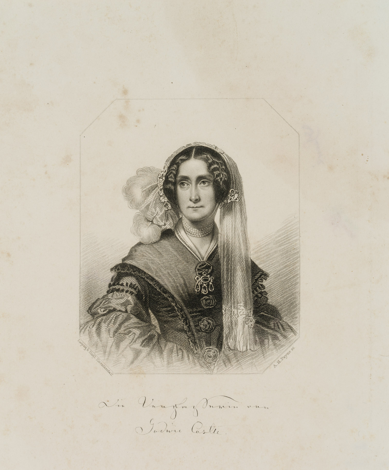 The half figure in the octagon shows Henriette Wilhelmine von Paalzow, née Wach (1788 Berlin – 1847 Berlin), German writer and wife of the later Major Carl Philipp von Paalzow. Her novels were highly appreciated at the Prussian court, especially by King Frederick William IV, the “romantic on the royal throne”. Printed / published by Engl. Kunst-Anstalt, Leipzig. - Date: c. 1840