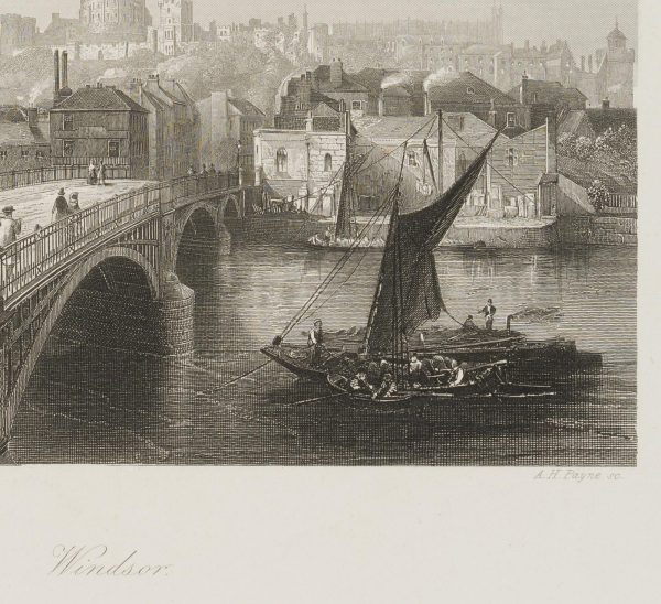 - Description: Steel engraving with a view of Windsor and Windsor Castle.