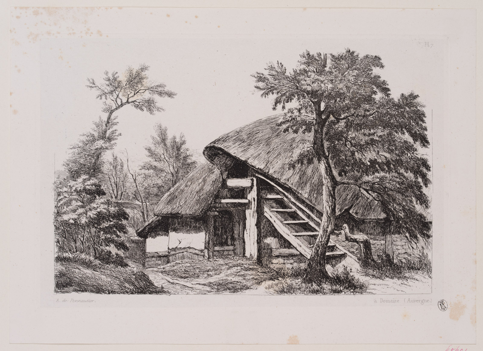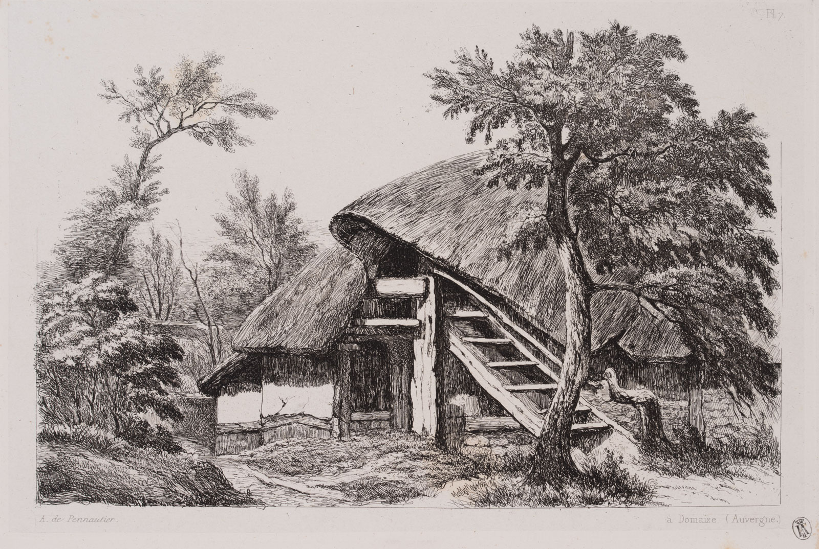 • Schlagworte: Bauernhof, Hütte, Strohdach, Domaize, Auvergne, Frankreich, Architektur, Genre, Frankreich, Romantik, 1800-1849