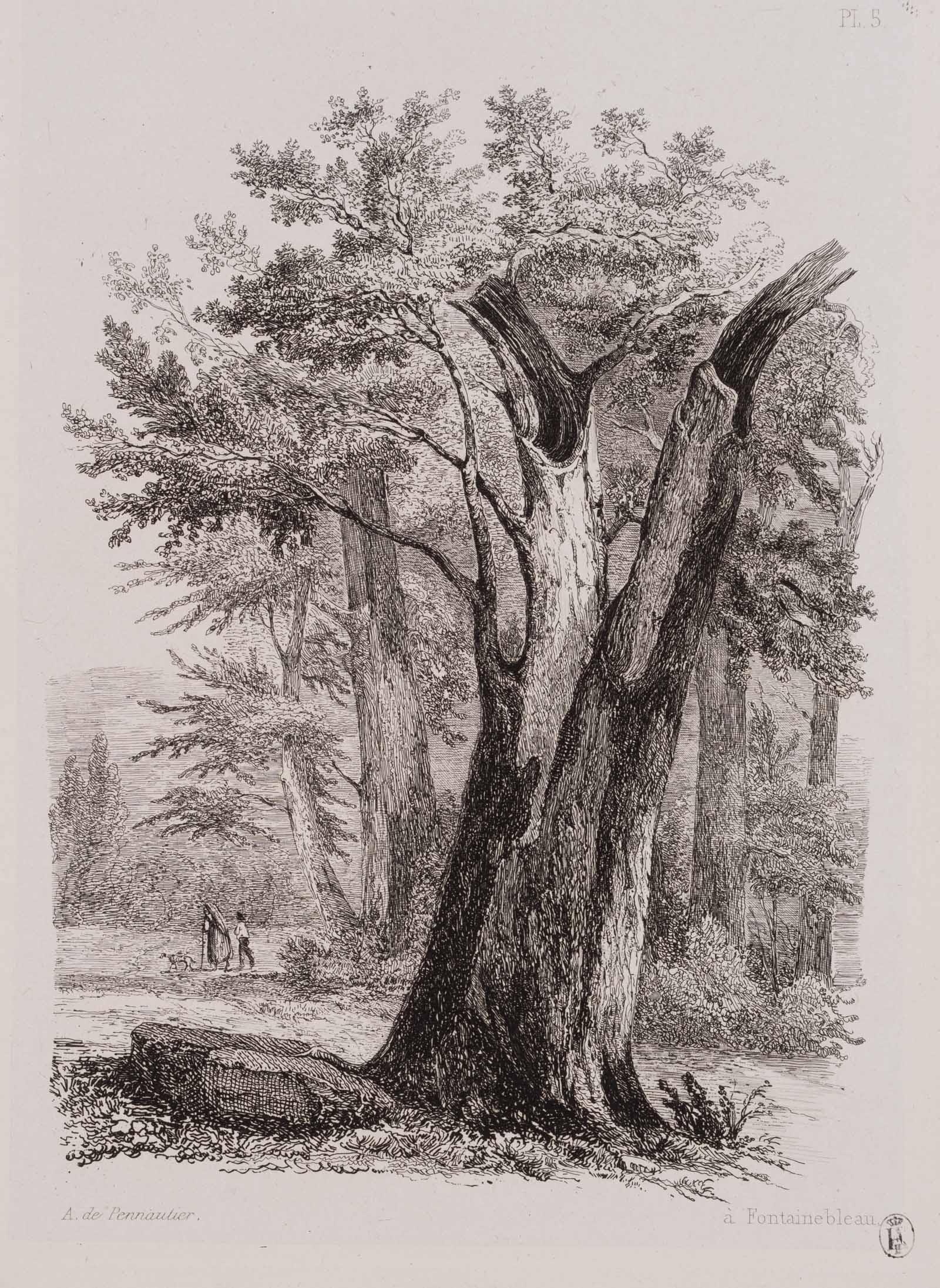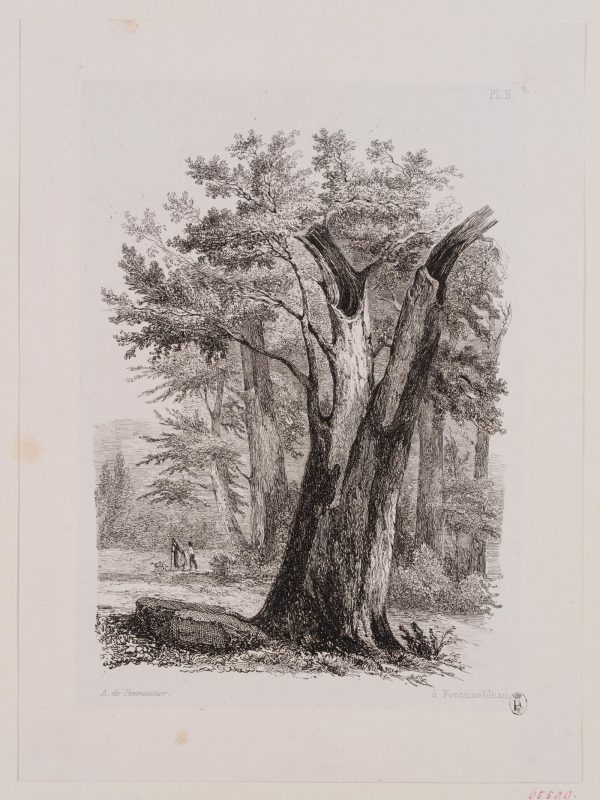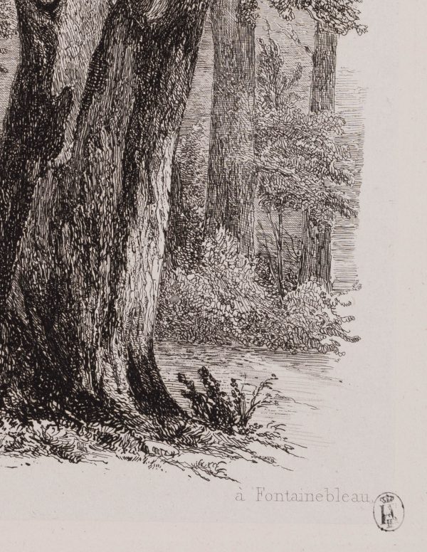 Amédée de Pennautier (1803 Domaize – 1857 Paris), Fontainebleau. Woodland with tree, 19th century, Etching