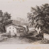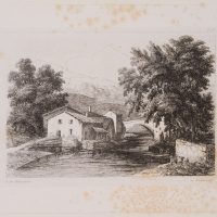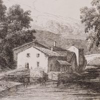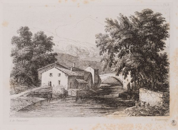 Amédée de Pennautier (1803 Domaize – 1857 Paris), Farm by the river near Sassenage, Grenoble, 19th century, Etching