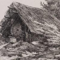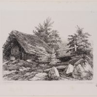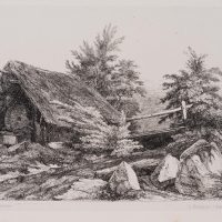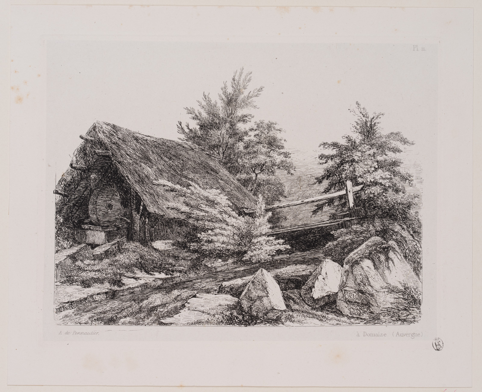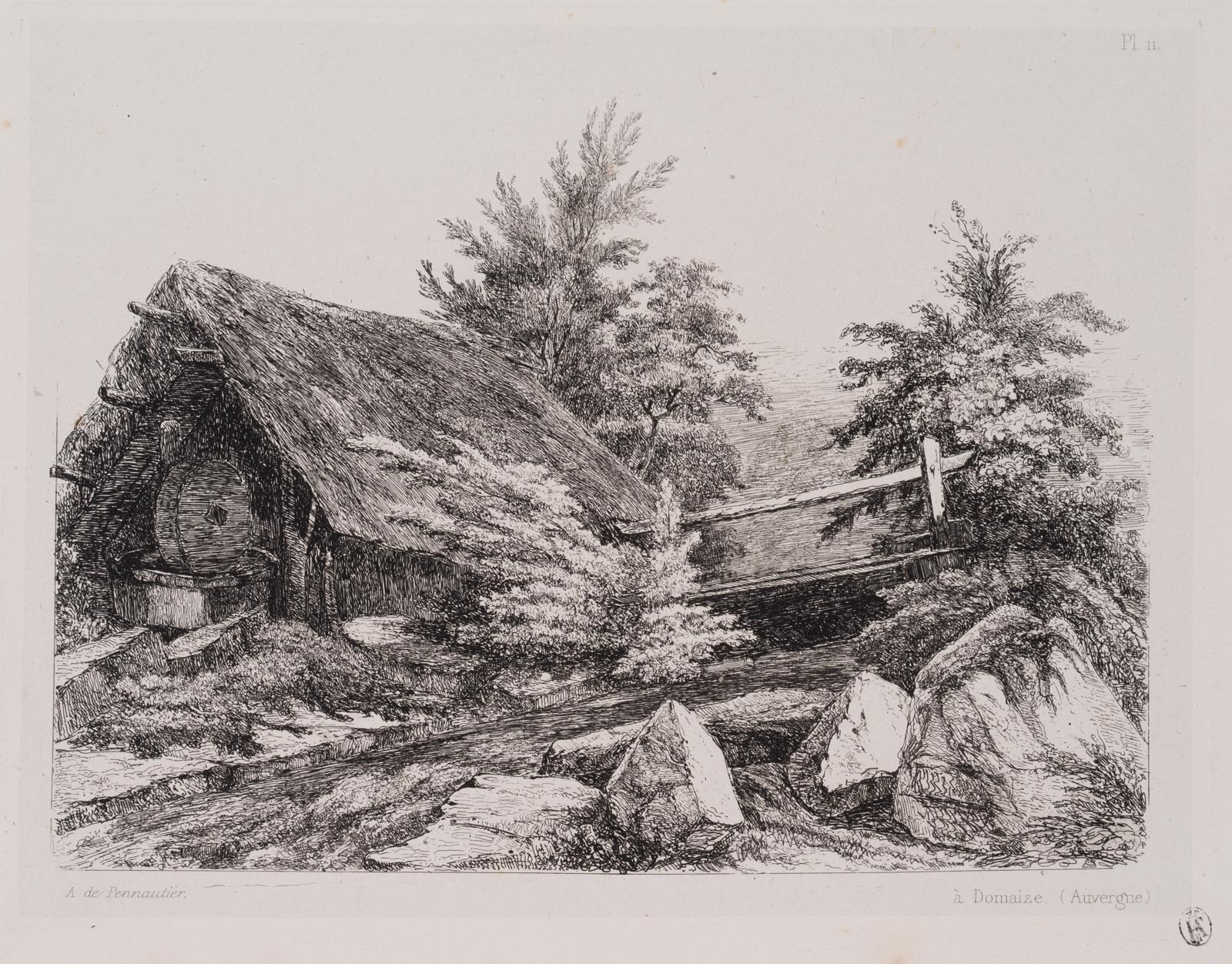 Amédée de Pennautier (1803 Domaize – 1857 Paris), Hut in stony terrain. Domaize. Auvergne, 19th century, Etching