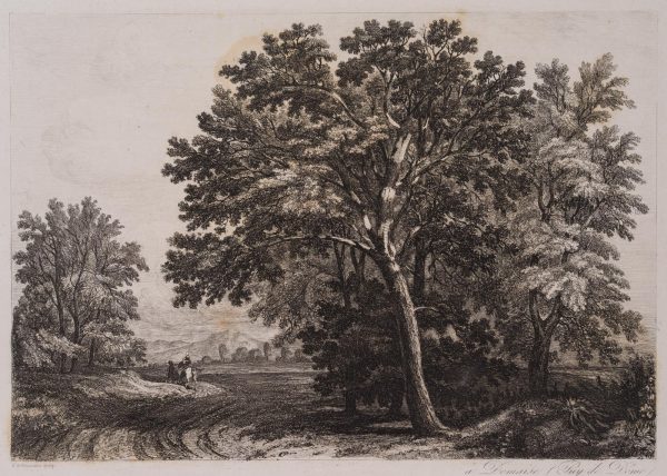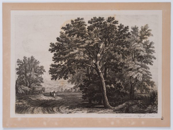Amédée de Pennautier (1803 Domaize – 1857 Paris), Magnificent tree on a country road, 19th century, Etching