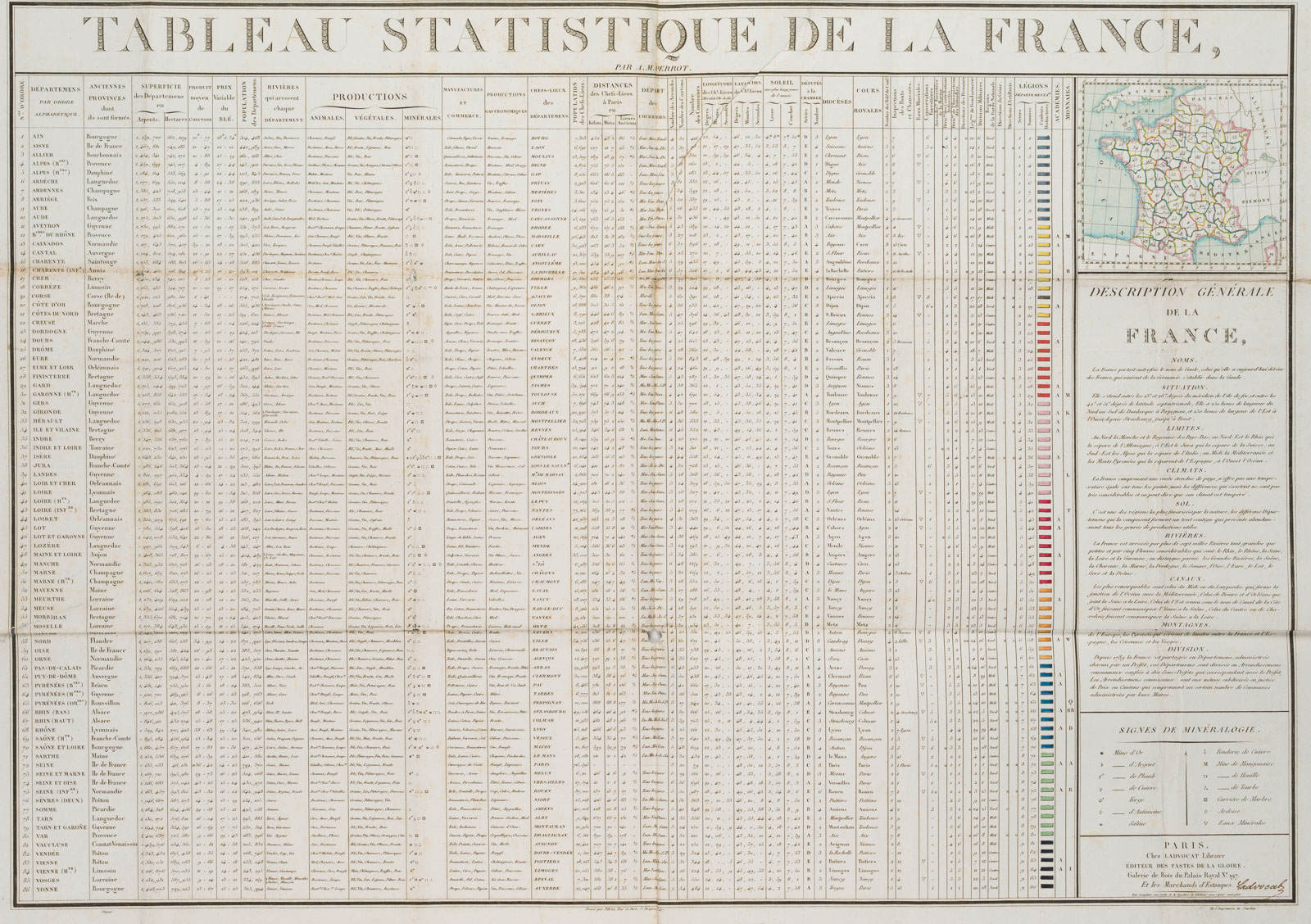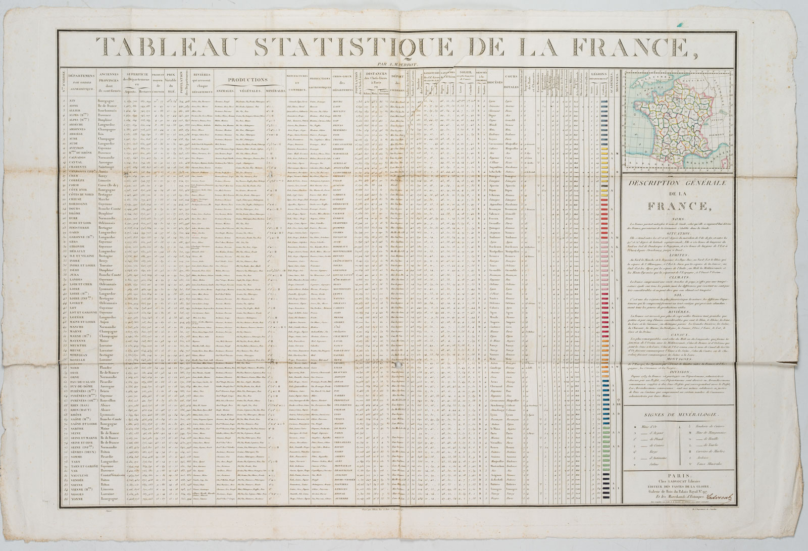 A. M. Perrot (19. Jahrhundert), ‘Tableau Statistique de la France’, Statistische Daten über Frankreich. Population. Klima. Produktion und Wirtschaft etc., 19. Jahrhundert, Radierung