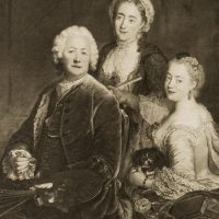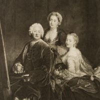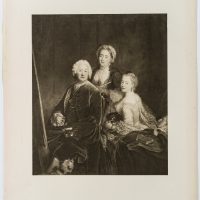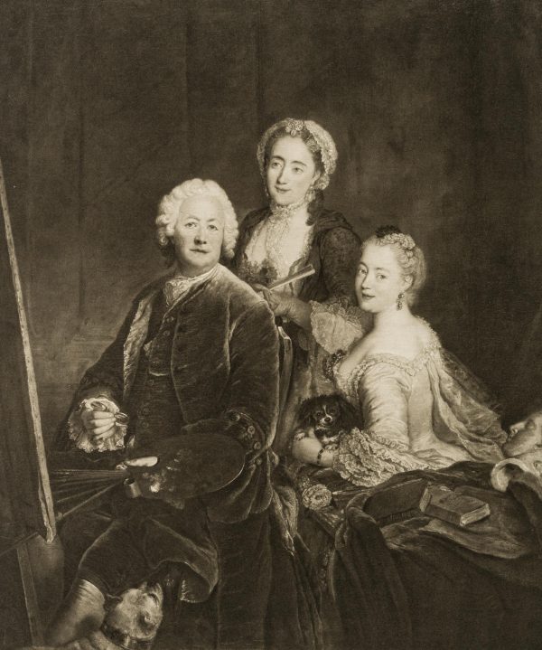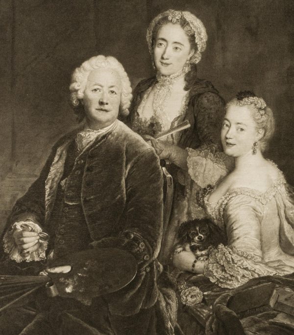 Antoine Pesne (1683 Paris – 1757 Berlin), Portrait of the Painter with his Daughters (1754) Gemäldegalerie Berlin, from a catalogue of masterpieces, 1905, Photogravure