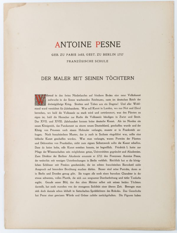 Antoine Pesne (1683 Paris – 1757 Berlin), Bildnis des Malers mit seinen Töchtern (1754) Gemäldegalerie Berlin, aus einem Meisterwerke-Katalog, 1905, Photogravure