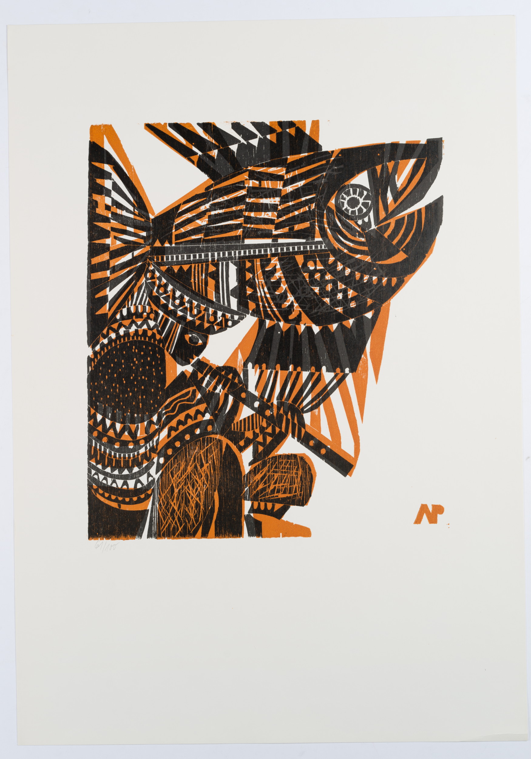 - Schlagworte: Abstrakt, Kubismus, indigene Formen, Südamerika, Musik, Flöte, Musik, Peru, Fisch, Abstrakt, 1970-1989