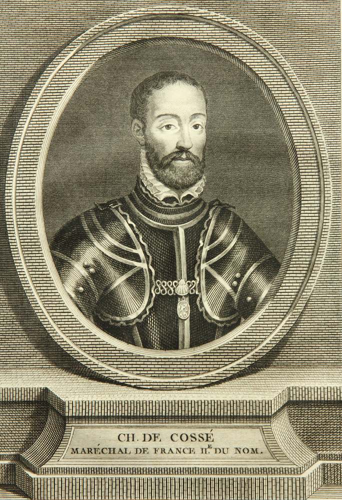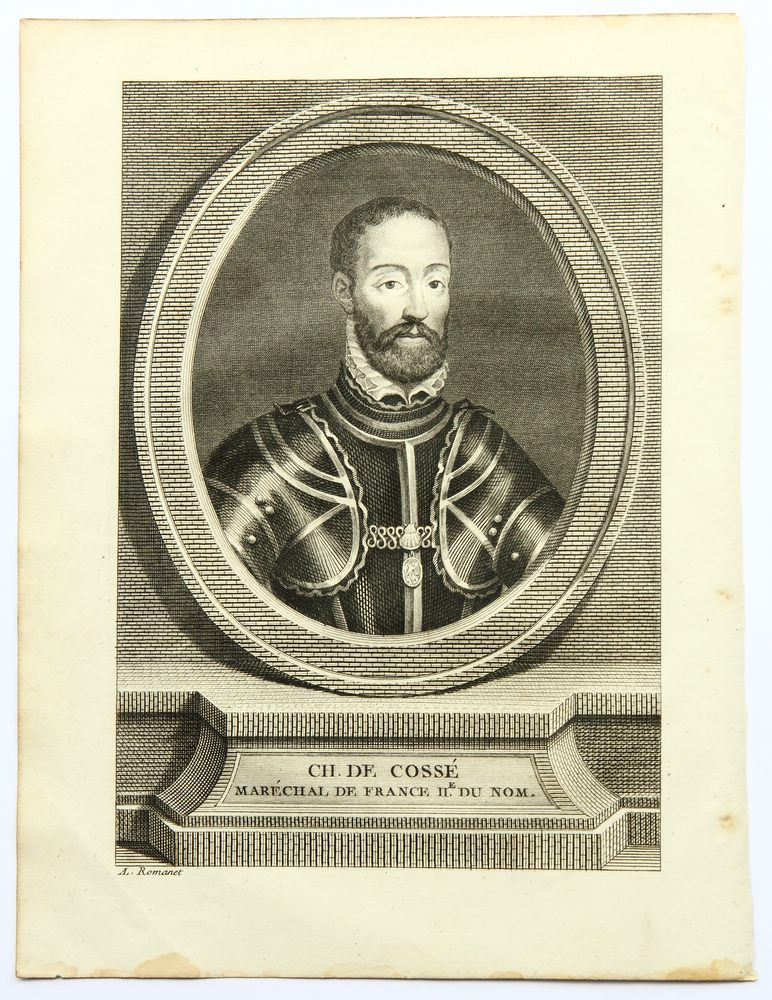 Antoine Louis Romanet (um 1742 Paris – nach 1810 ), Porträt des französischen Marschalls und Diplomaten Charles de Cossé, Comte de Brissac (1505 – 1563 Paris), ab 1562 Kommandant von Paris und ab 1563 Gouverneur der Normandie, 18. Jahrhundert, Kupferstich