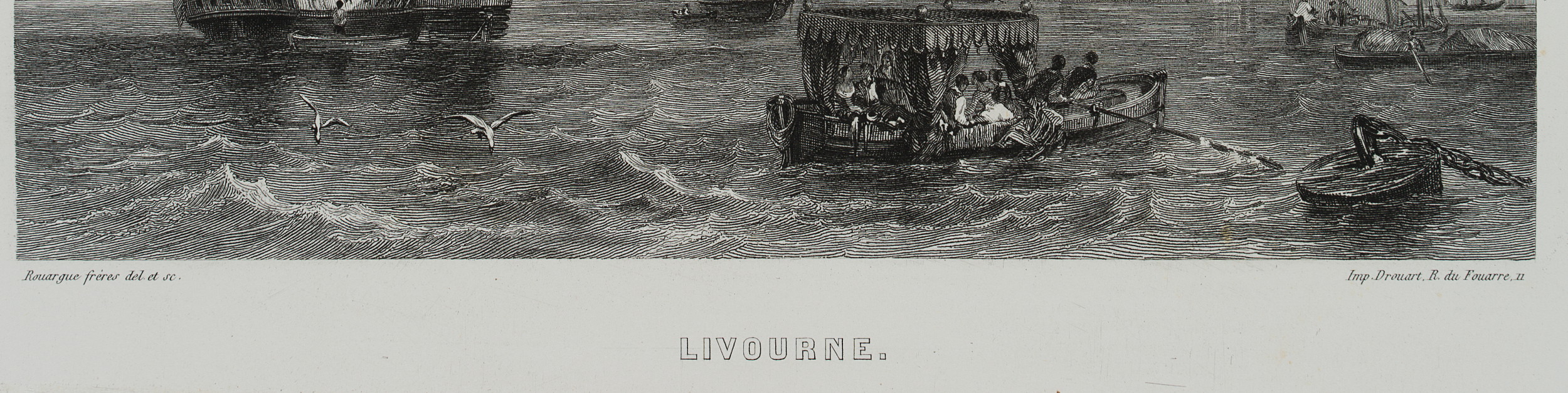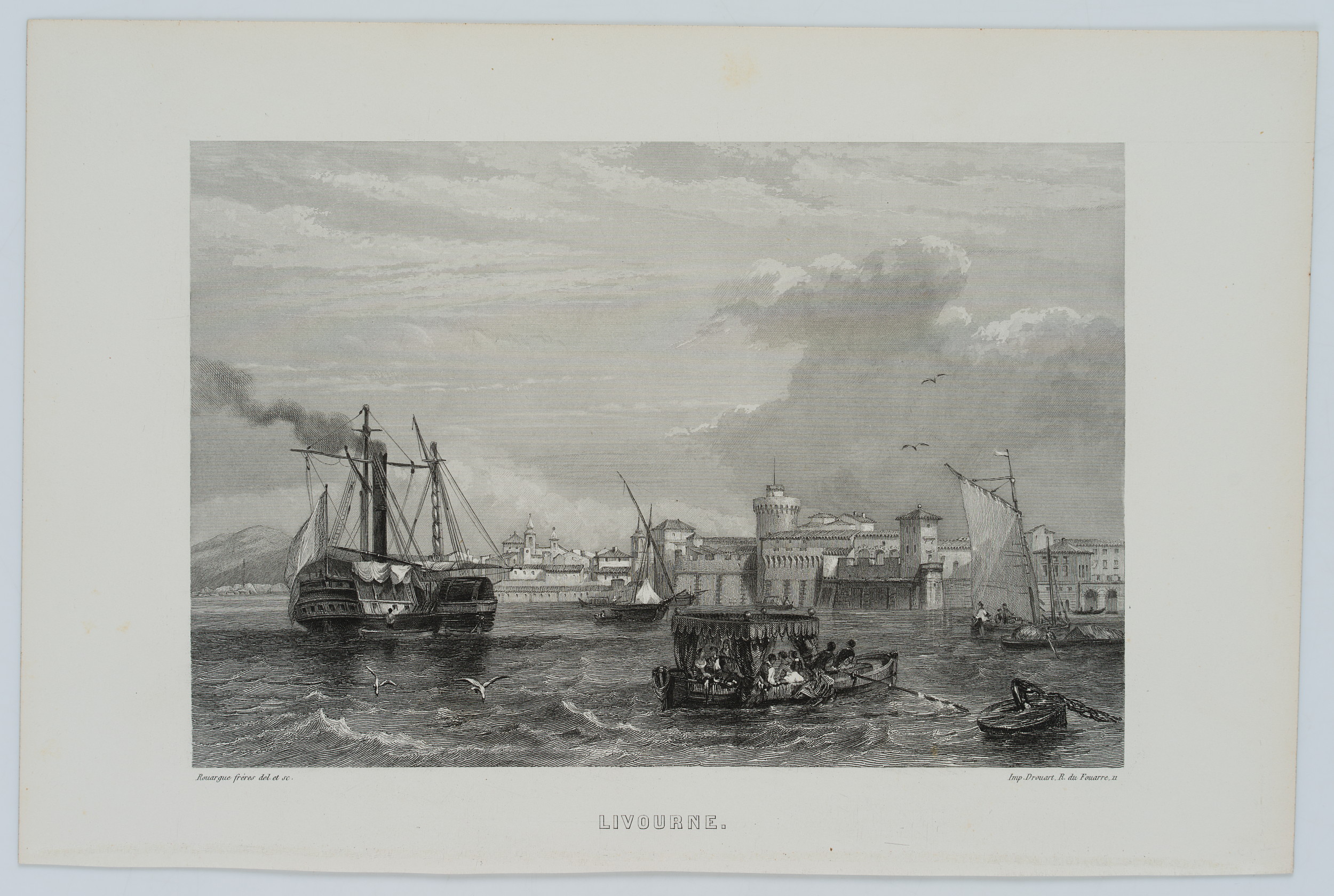 - Bezeichnung: Unten im Druck signiert: “Rouargue fréres del. et sc. | Imp. Drouart R. du Fouarre II”. Unten im Druck bezeichnet: “Livourne”.