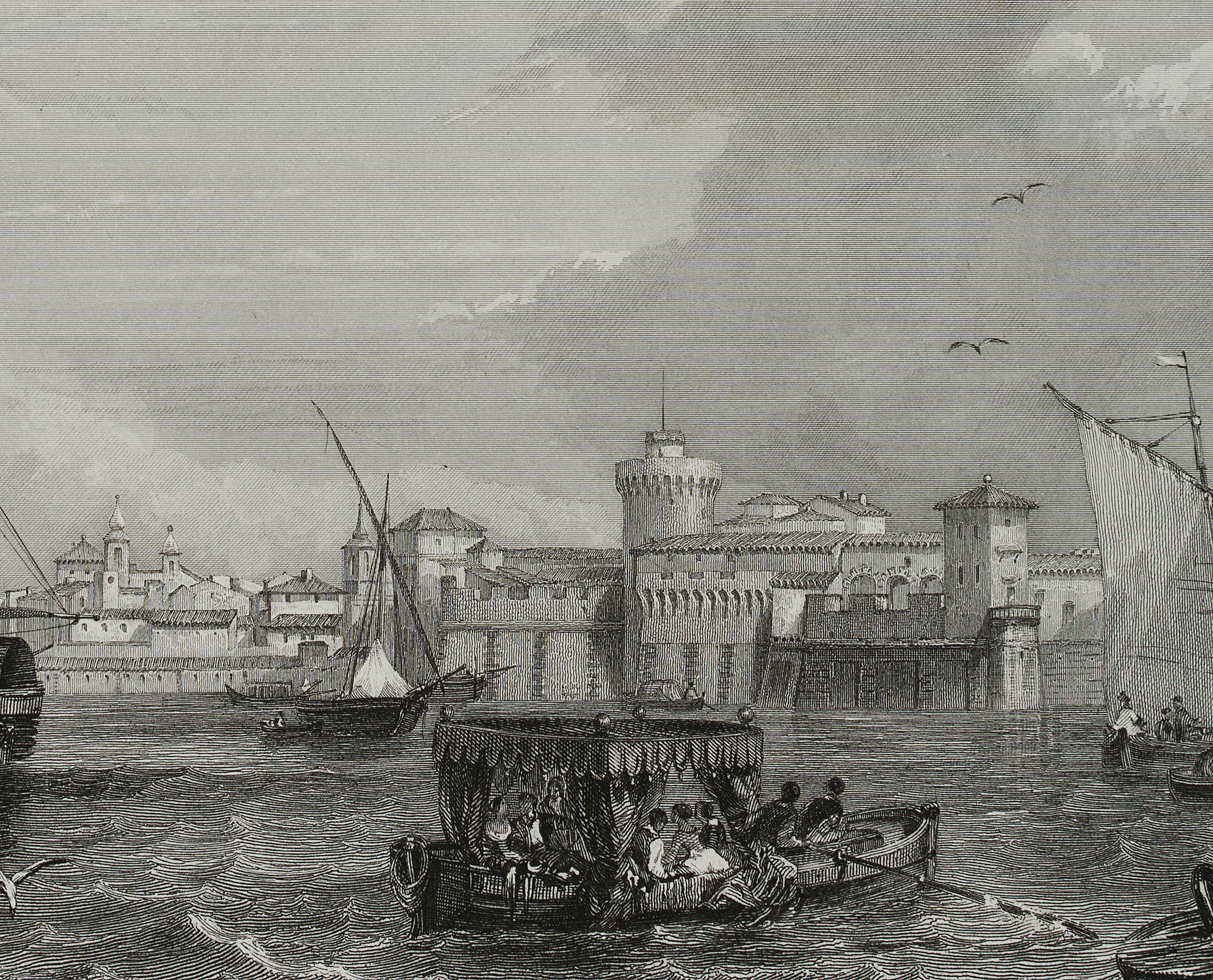 - Keywords: Italy, Tuscany, Livorno, sailing ship, rowing boat, architecture, 19th century, Romanticism, Cities, Italy,