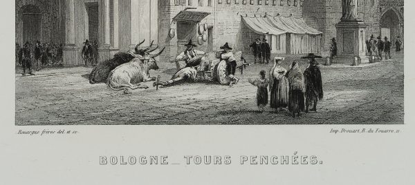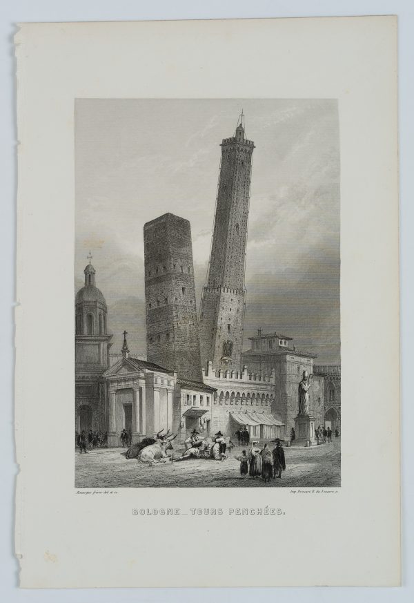 - Inscription: At the lower part signed in the printing plate: “Rouargue fréres del. et sc. | Imp. Drouart R. du Fouarre II”. At the lower part inscribed in the printing plate: “Bologne_Tours Penchées”.