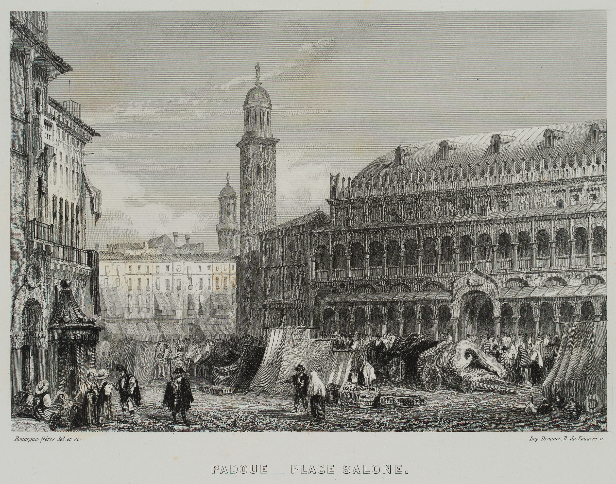 - Inscription: At the lower part signed in the printing plate: “Rouargue fréres del. et sc. | Imp. Drouart R. du Fouarre II”. At the lower part inscribed in the printing plate: “Padoue_Place Salone”.