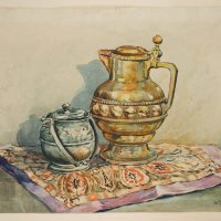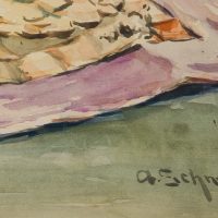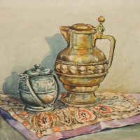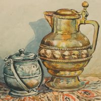 A. Schmidt (20. Jahrhundert), Silberne Kanne mit Zuckertöpfchen, , Aquarell