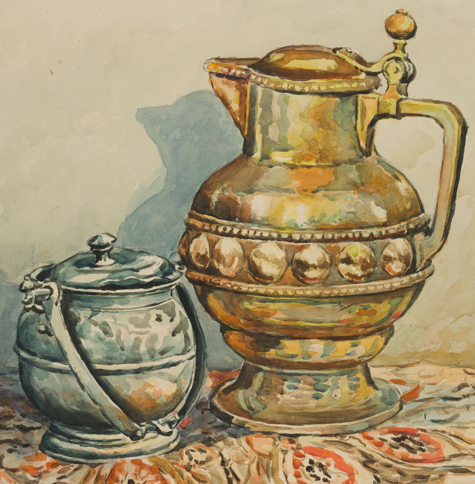 A. Schmidt (20th century), Silver Pot with Sugar Bowl, , Watercolor