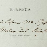 - Description: Albert SCHULE (1801 Leipzig – 1875 ibid. ), Portrait of Anton Raphael Mengs (1728 Aussig – 1779 Rome), painter, 1821, copper engraving. Description:Copper engraving on paper. Signed in printing plate below the portrait and dated 1821. Below with the name of the sitter. Additionally inscribed in ink with the sitter’s life data.