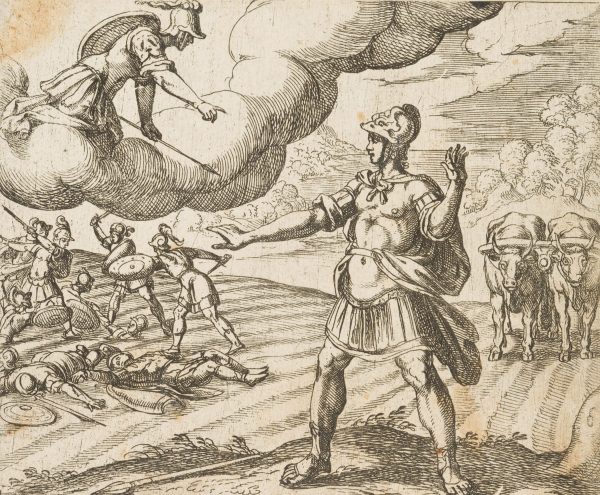 Antonio Tempesta (1555 Florenz – 1630 Rom), Die Kämpfer, die aus den Zähnen des Drachen geboren wurden, um 1610, Kupferstich