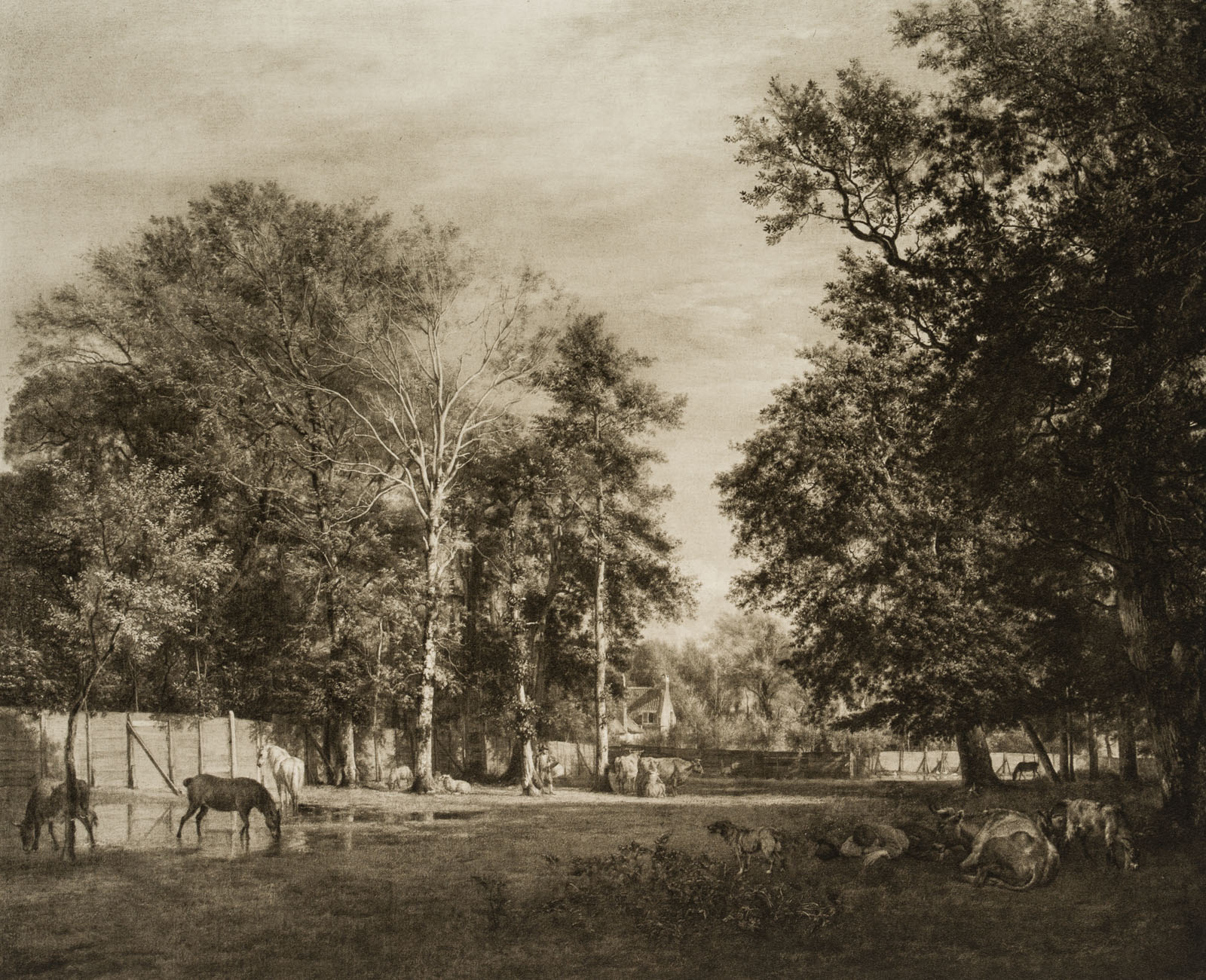 Adriaen van de Velde (1636 Amsterdam – 1672 ibid.), Dutch Farm (1666), Gemäldegalerie Berlin, 1905, Photogravure
