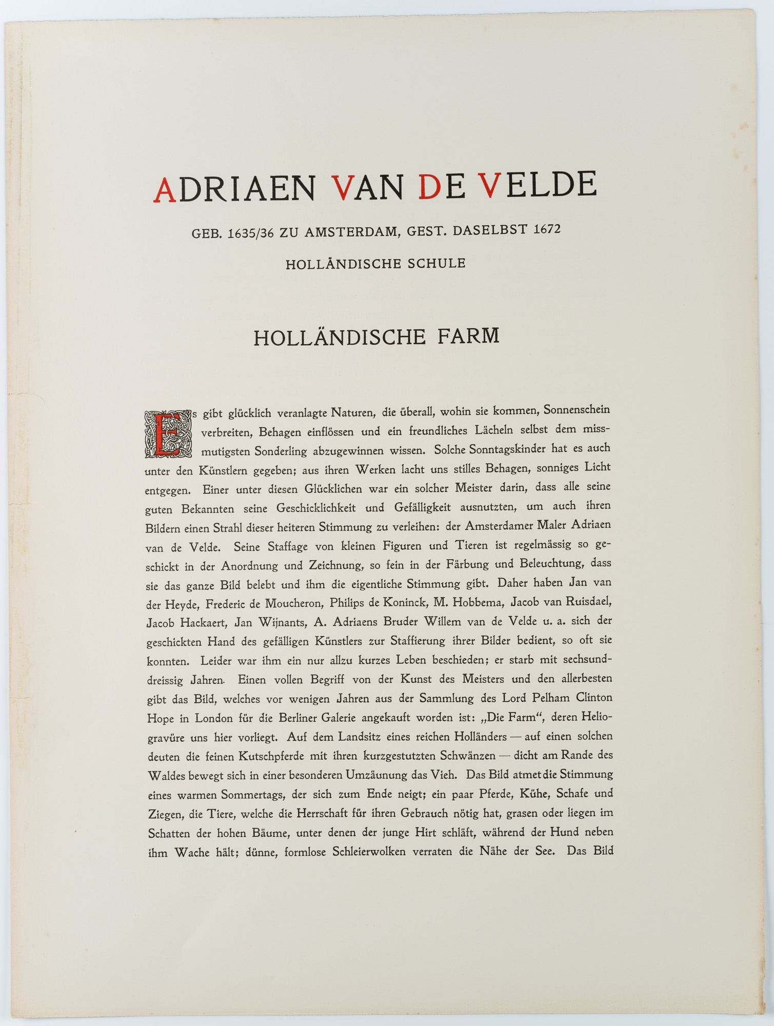 - Description: From the catalogue: Masterpieces of Painting. Old Masters. Reproductions in Photogravure. With a preface and accompanying text by Wilhelm Bode and Fritz Knapp, Berlin 1905. Please note further offers from the Masterpieces catalogue in our online shop. The photogravure is accompanied by the corresponding picture text by Wilhelm Bode on an additional sheet.