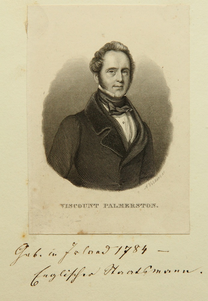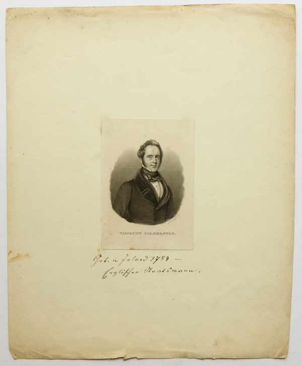 August Volkert (*1818 Nürnberg), Porträt des 3. Viscount Palmerston, brit. Premier, 19. Jahrhundert, Stahlstich