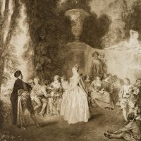 Antoine Watteau (1684 Valenciennes – 1721 Nogent-sur-Marne), Fêtes Vénitiennes (1718-19), Scottish National Gallery, Edinburgh, 1905, Photogravure