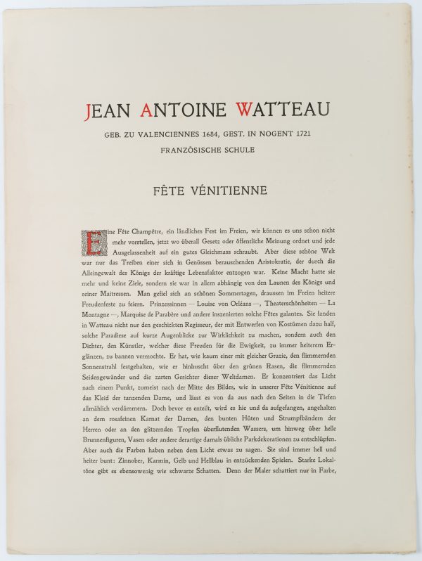 - Zustand: Sehr guter Zustand. Die Blattecken sind teilweise leicht bestoßen. Kurzer Einriss am rechten unteren Blattrand. Die Photogravure ist tadellos.