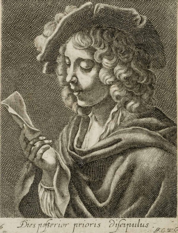 Andreas Matthaus Wolfgang (1660 – 1726 ), Portrait in half-length of a reading young boy, 18th century, Etching