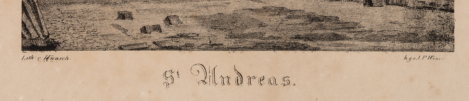 - Inscription: Signed “Lith v. Wünsch” below left and “h. g. v. J.P. Weyer” on the right, inscribed with the name of the church below.