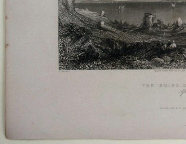 - Description: H. Adlard, The Ruins of Carthage, steel engraving after J. Salmon, 1840. Description: High quality steel engraving by H. Adlard after J. Salmon, inscribed: “J. Salmon Drawn from Nature by Sir Grenville T. Temple Bar H. Adlard The Ruins of Carthage Africa Fisher, Son&C. London & Paris, 1840”. From a slightly elevated vantage point the viewer looks out over the calm sea. In the foreground three men are resting, taking the place of the viewer in the picture. A mountain range, rising to a high mountain, lies against the low horizon on the far shore. Henry Adlard (first mentioned in London 1801) was a British engraver.