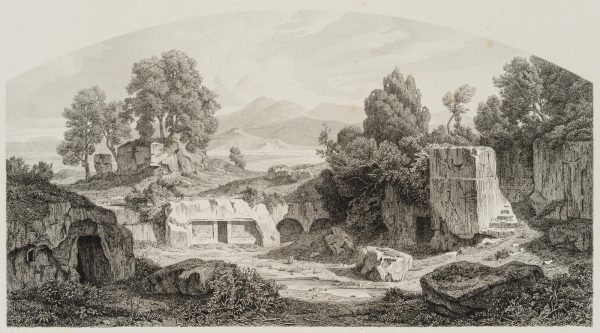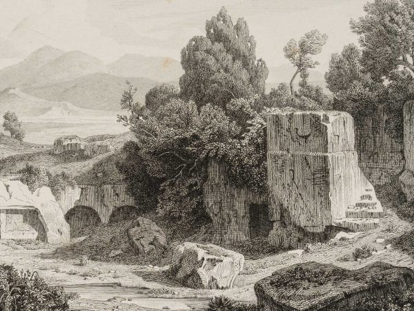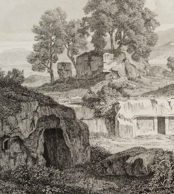Eugène Edouard Adler-Mesnard (around 1845 Paris – 1884 ibid.) after Wilhelm Klose (1830 – 1914 ), Etruscan rock tombs near Cerveteri, Italy, 19th century, Etching