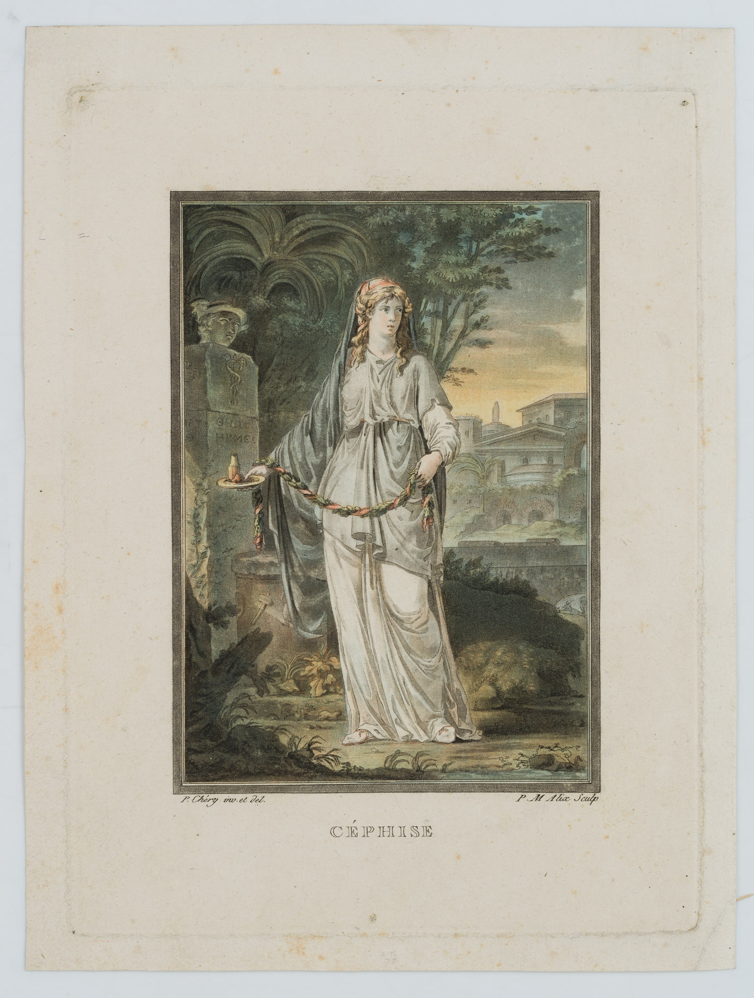 Pierre-Michel Alix (1762 Paris – 1817 ibid.) after Philippe Chéry (1759 – 1838 ), Costume for the role of Cephise (Andromache’s confidante) from the tragedy ‘Andromache’ by Jean Racine, sheet from: ‘Research on the Costumes and Theatre of All Nations’ Vol. I., 18th century, Aquatint