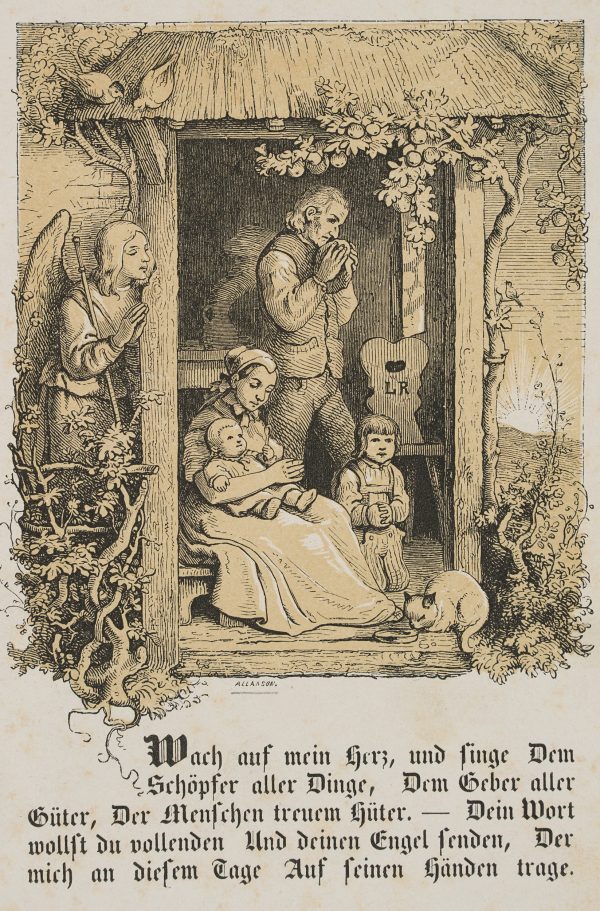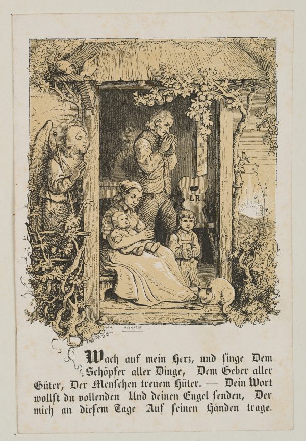 Allanson (19. Jahrhundert) nach Ludwig Richter (1803 Dresden – 1884 ebd.), Familienbild, Wach auf mein Herz, 19. Jahrhundert, Holzstich