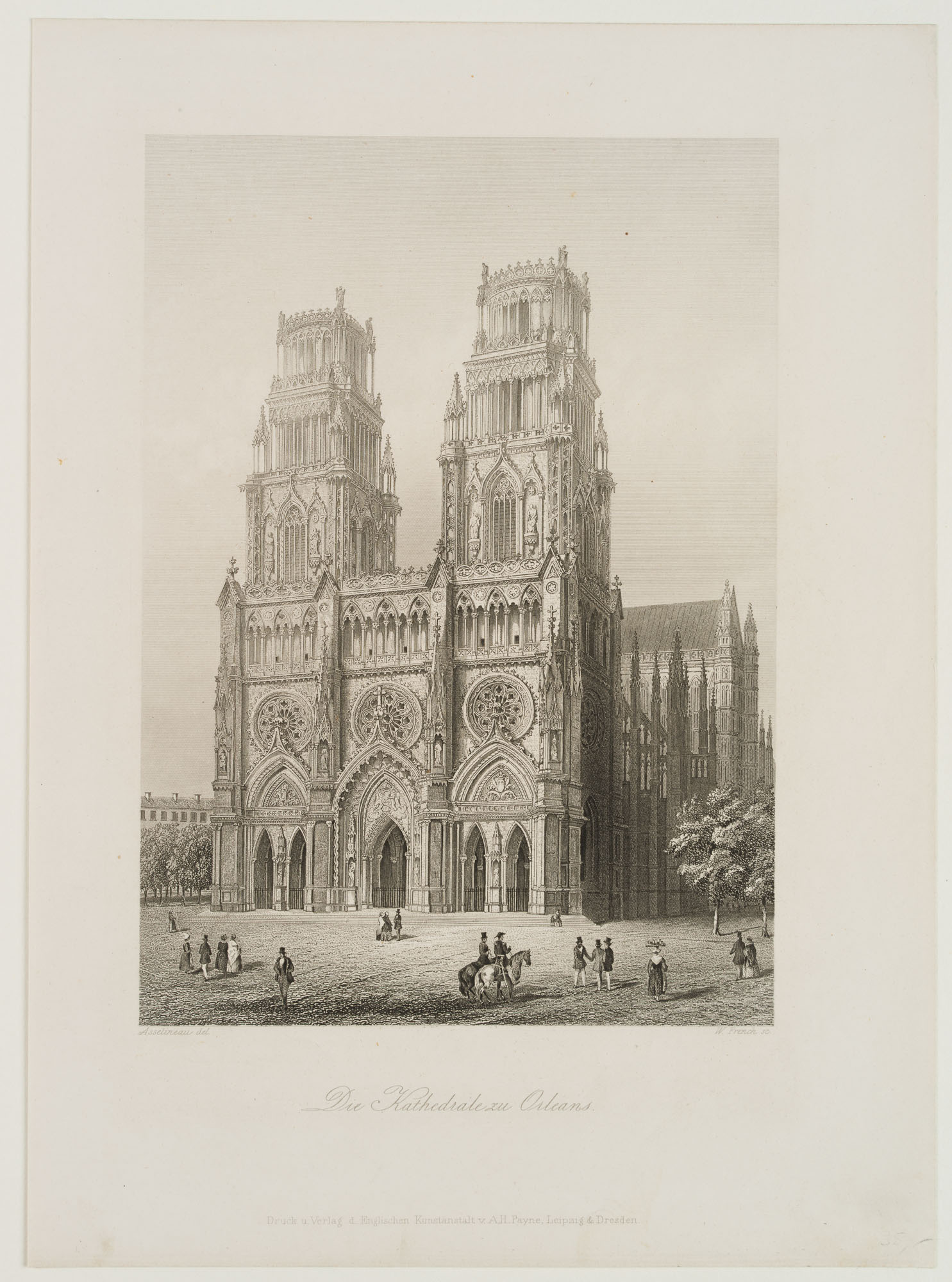 Léon Auguste Asselineau (1808 – 1889 ) after William French (1815 Sussex – 1898 East Grinstead), The Cathedral of Orleans, France, 19th century, Steel engraving