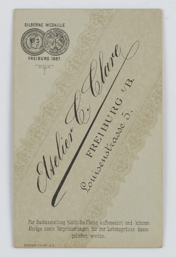 - Description: The photograph is inscribed below with the name of the photo studio: “Atelier C. Clare Freiburg”.