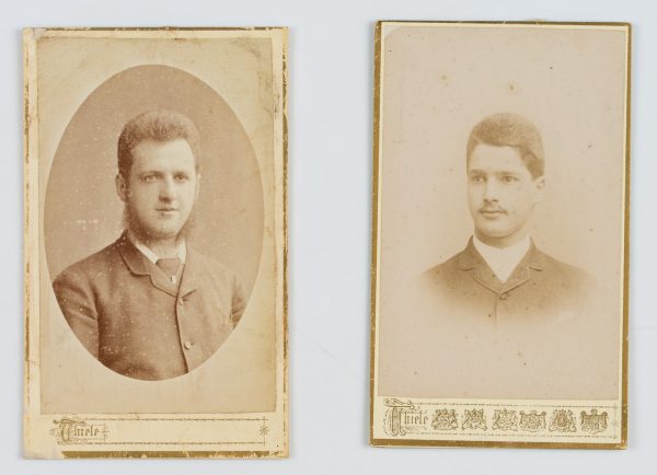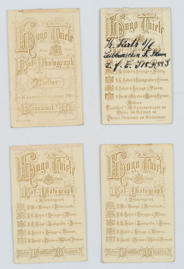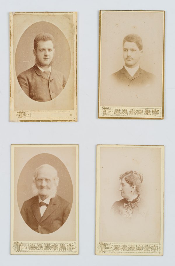 Atelier Hugo Thiele (19. Jahrhundert), 4 Cartes de Visite. Mit einer Dame im Profil, einem Herren mit Koteletten und zwei Leibburschen, 1888, Original-Fotografie