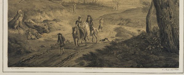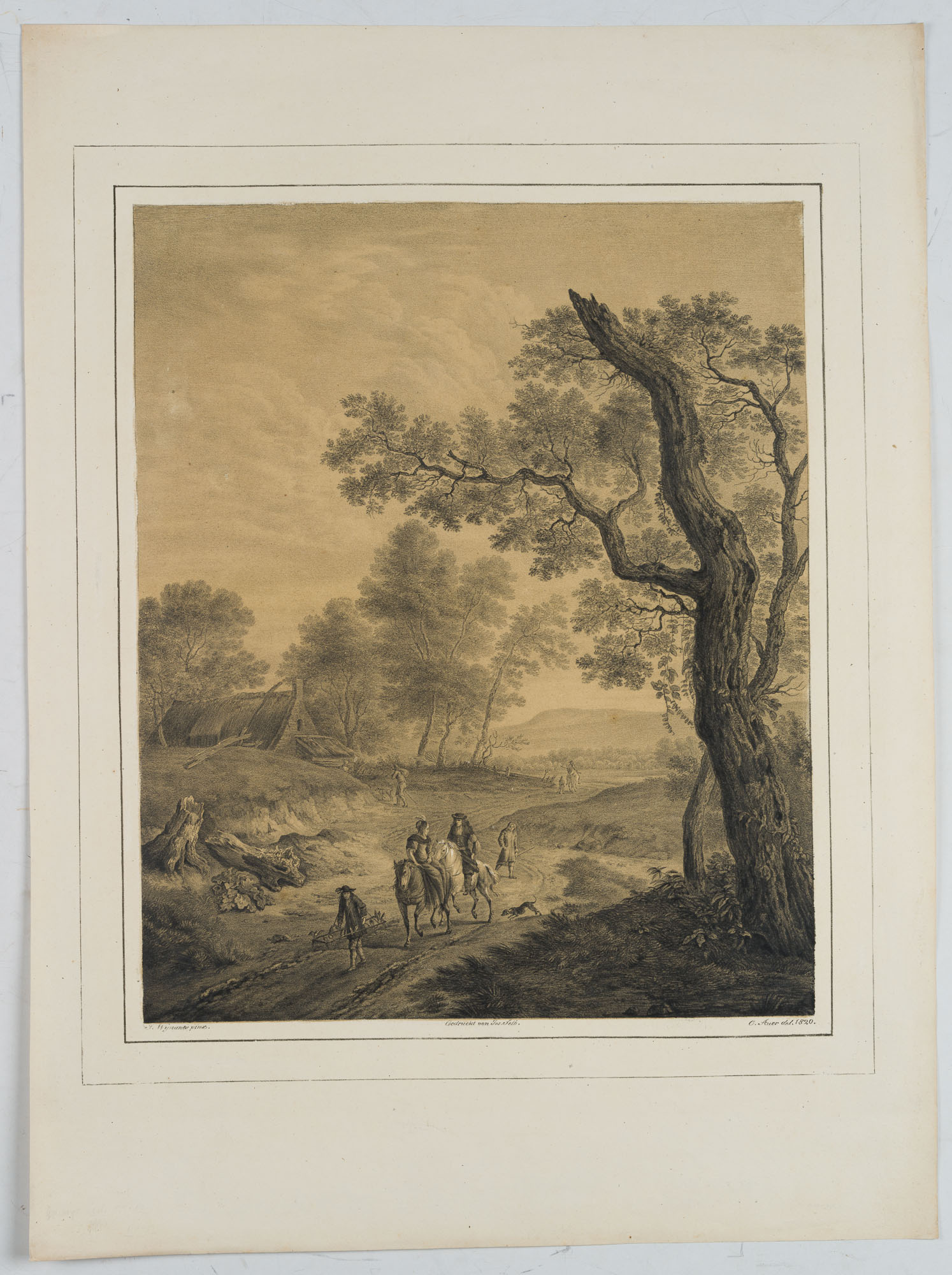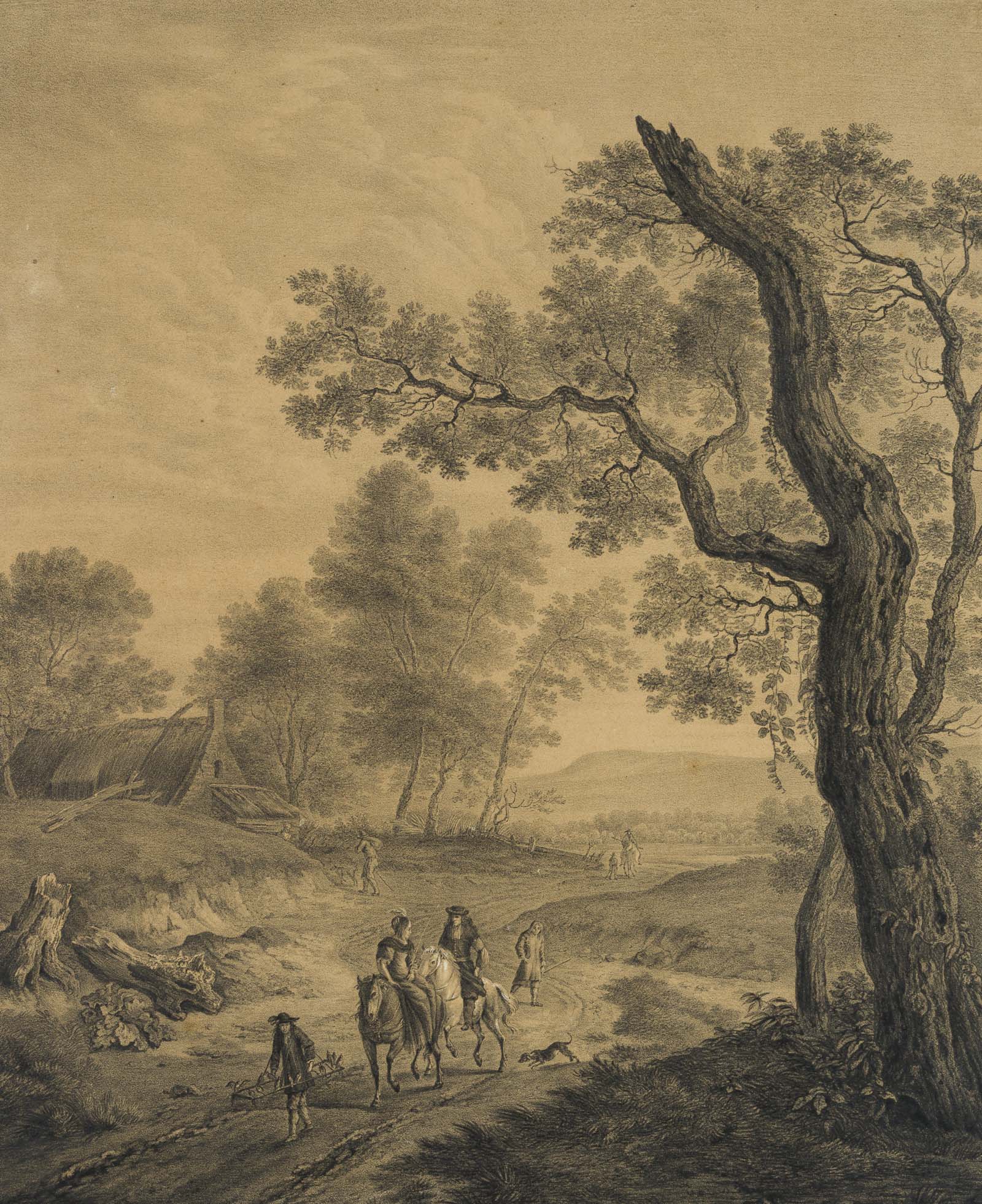 Caspar Auer (1795 Nymphenburg – 1821 Munich) after Jan Wijnants (1632 Haarlem – 1684 Amsterdam), View of a busy country road leading through a forest and pasture landscape, 1820, Lithography