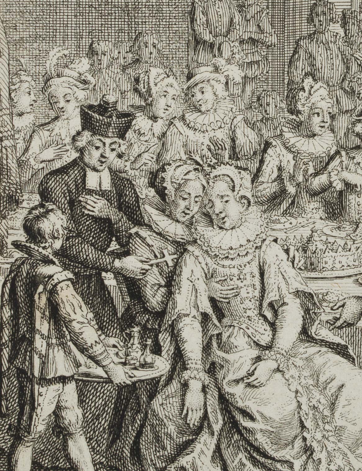 François-Antoine Aveline (1718 – um 1762 ) nach Jacob Folkema (18. Jahrhundert), Höfische Festgesellschaft, 18. Jahrhundert, Radierung