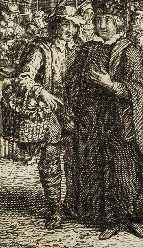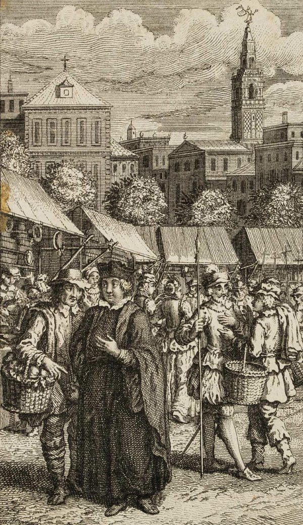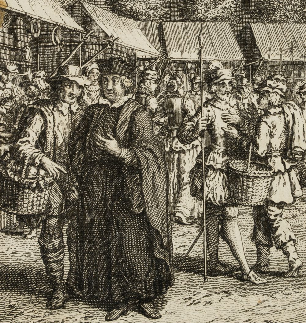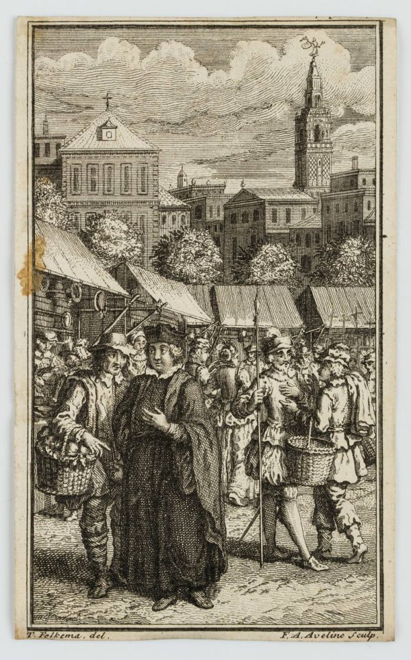 François-Antoine Aveline (1718 – um 1762 ) nach Jacob Folkema (18. Jahrhundert), Marktszene mit Klerus, 18. Jahrhundert, Kupferstich