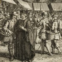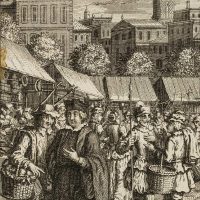 François-Antoine Aveline (1718 – around 1762 ) after Jacob Folkema (18th century), Market scene with clergy, 18th century, Copper engraving